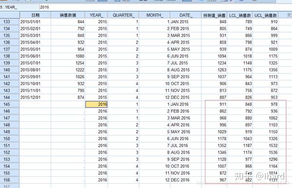 然后就可以在主界面看到预测数据及2016年的每月销售额,以及预测模型,如图