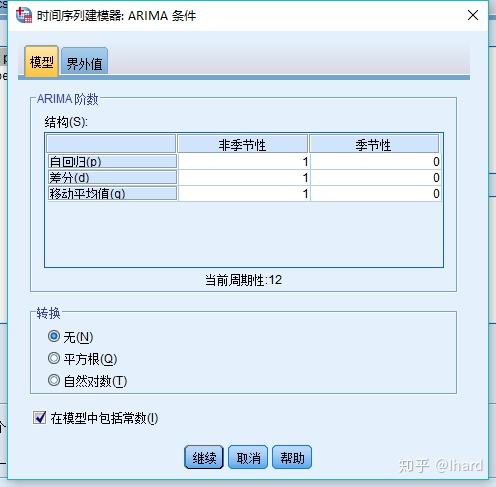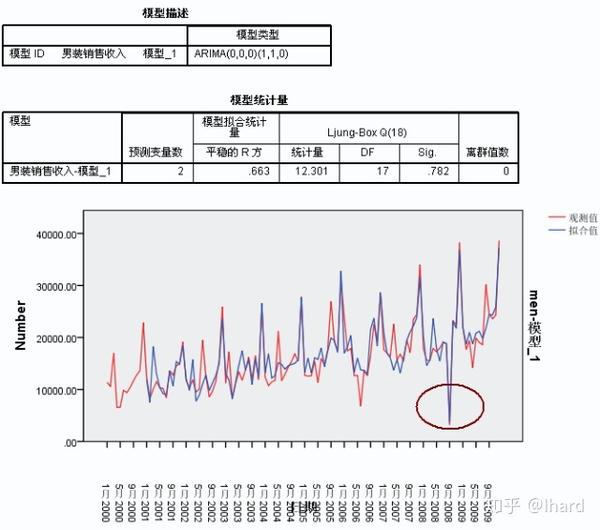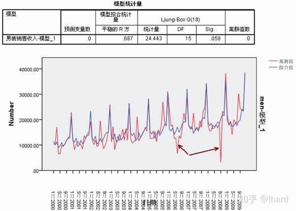 但实际上,spss会提供一个自动分析的方法。模型拟合几乎均可包含在ARIMA模型族中,寻找适当的参数是一个反复尝试的过程。