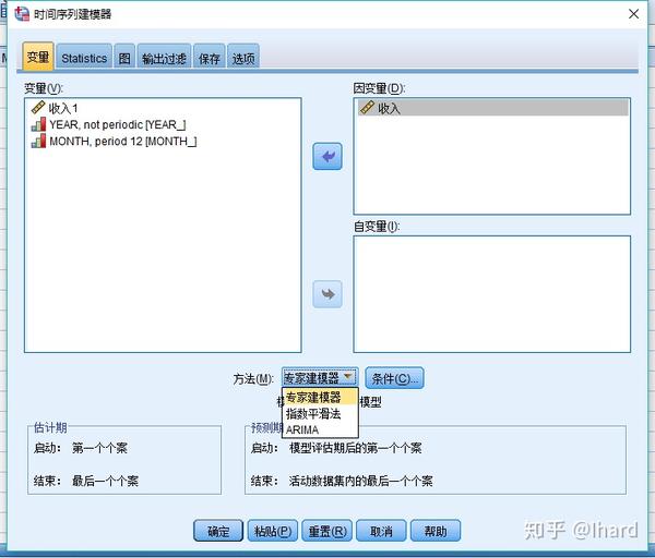 提供了三大类预测方法:1-专家建模器,2-指数平滑法,3-ARIMA