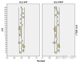 检查模型残差的自相关函数 (ACF) 和偏自相关函数 (PACF) 的值 比 只查看拟合优度统计量能更多地从量化角度来了解模型。合理指定的时间模型将捕获所有非随机的变异,其中包括季节性、趋势、循环周期以及其他重要的因素。这两个自相关函数中的显著结构都可以表明基础模型不完整。