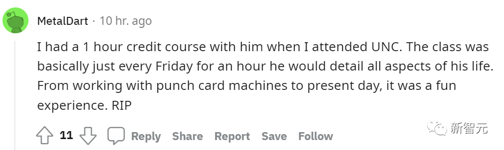 上过他的课的网友也表示:「每周五的课上,他都会给我们分享他的生活。从打孔卡讲到现在。那是一段充满乐趣的经历。」