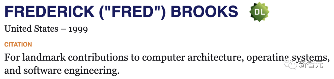 图灵奖评审团称,该奖是为了表彰Brooks「在计算机结构、操作系统和软件工程方面的里程碑式的贡献。」