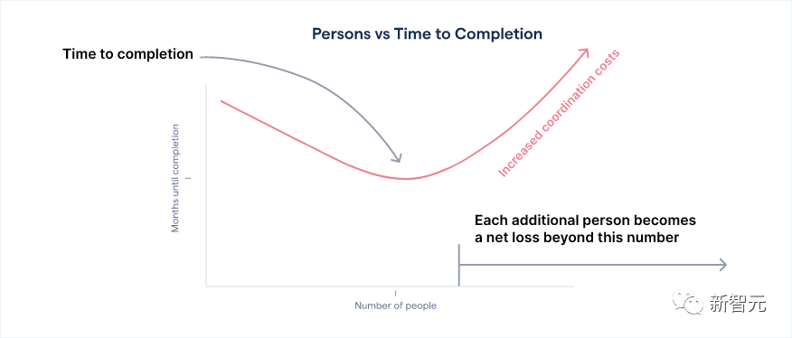 具体来说,在项目中,后来者需要加快速度,同时还要与前任进行沟通,从而使得开发团队增加了更多的开发时间,这个时间超过了新增程序员所做的贡献。