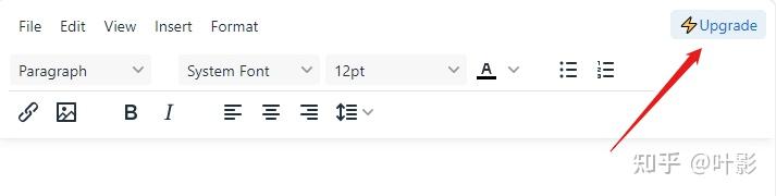 对免费版来说,默认初始化配置会在富文本编辑器的右上角添加一个升级付费版的按钮,点击后会打开新标签跳至官方付费介绍页面。这也是推广商业化服务的方式之一。