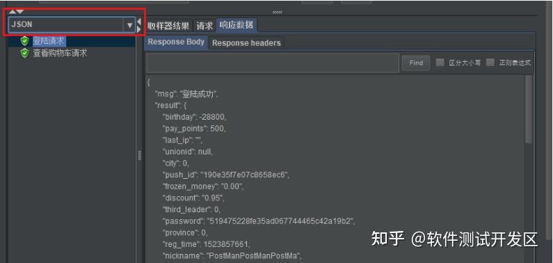 在JMeter的 察看结果树 组件中,有两种类型的Json数据查看器。