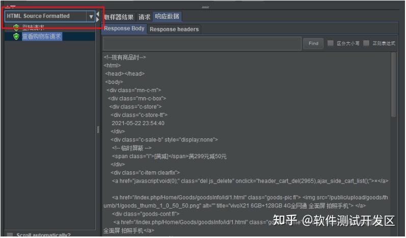 返回结果是一个HTML页面时,选择HTML Source Formatted视图选项,则渲染器将显示由Jsoup格式化的HTML源代码。跟在浏览器显示界面,鼠标右键“查看页面源代码”的信息一致,跟Text模式并没有区别。