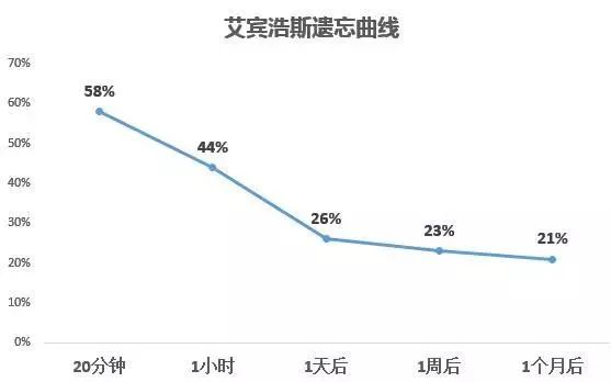 在学习完成后的1小时内,记忆量就会极速下降