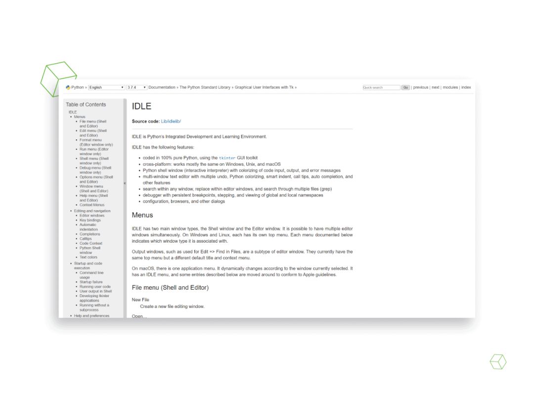 IDLE 代码编辑器深受学生欢迎,它是 Python 自带编辑器。该编辑器使用简单、通用,且支持不同设备。在使用更复杂工具之前,开发者可以通过 IDLE 学习基础知识。