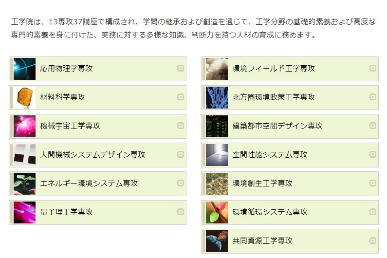 附:北海道大学工学院专攻一览:
