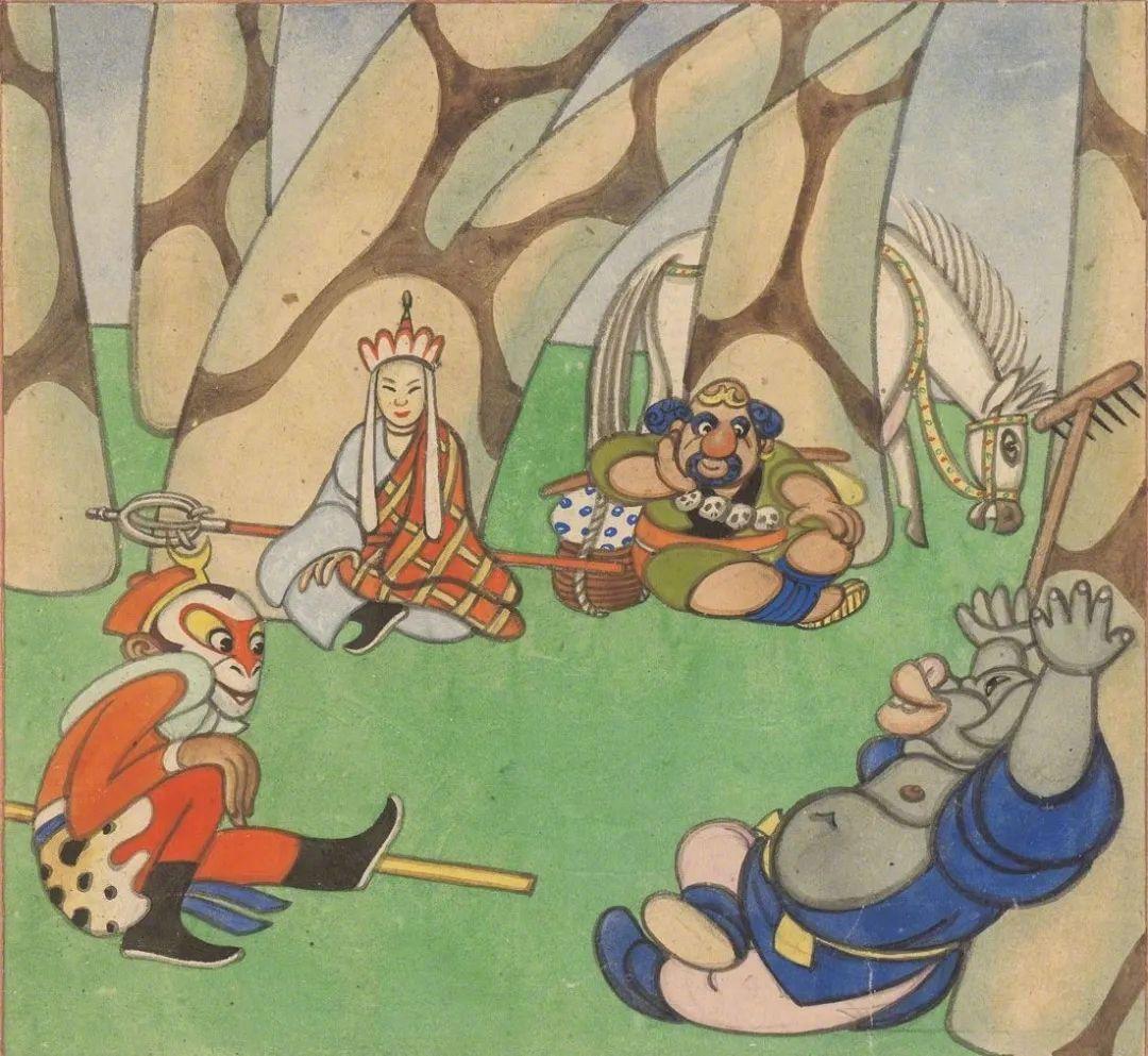 没有桌子,一个铺盖卷,几个箱子,搭一块板子,用很简单的绘画工具。《西游漫记》很多画面都有电影感,孙悟空、猪八戒等形象设计,已经十分接近《大闹天宫》的人物造型。