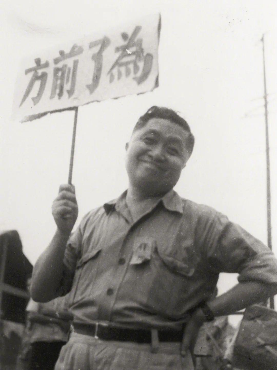 我在整理张光宇的图片资料的时候,发现其中有一张是抗战时期,他胖胖的身形,插着腰,举一个牌子,那牌子上写着“为了前方”。他的“为了前方”非常清晰,我们要上前线去抗日。