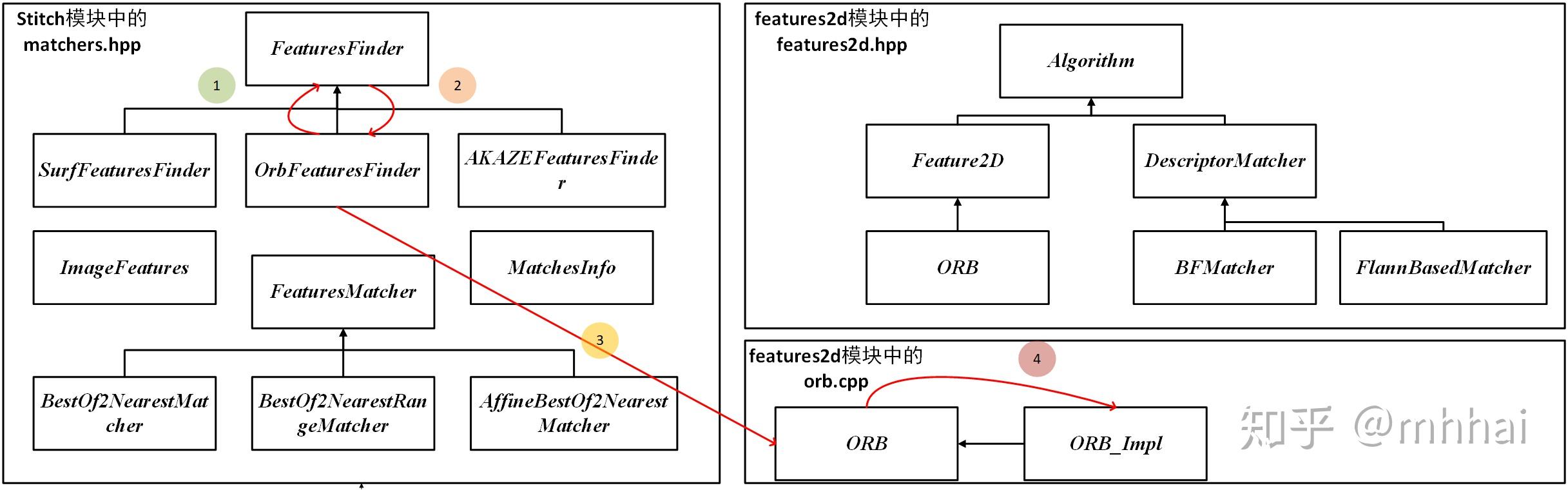 真正实现 ORB 算法是在orb.cpp中的 ORB_Impl 类,其他的都是一些函数调用过程,这也是opencv难以看懂的部分。 OrbFeaturesFinder 类声明(在matchers.hpp)如下: