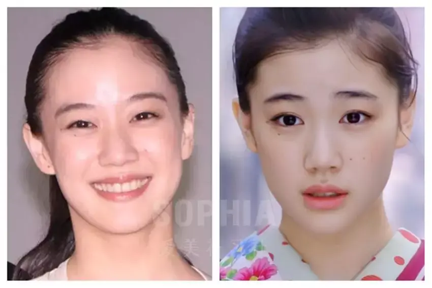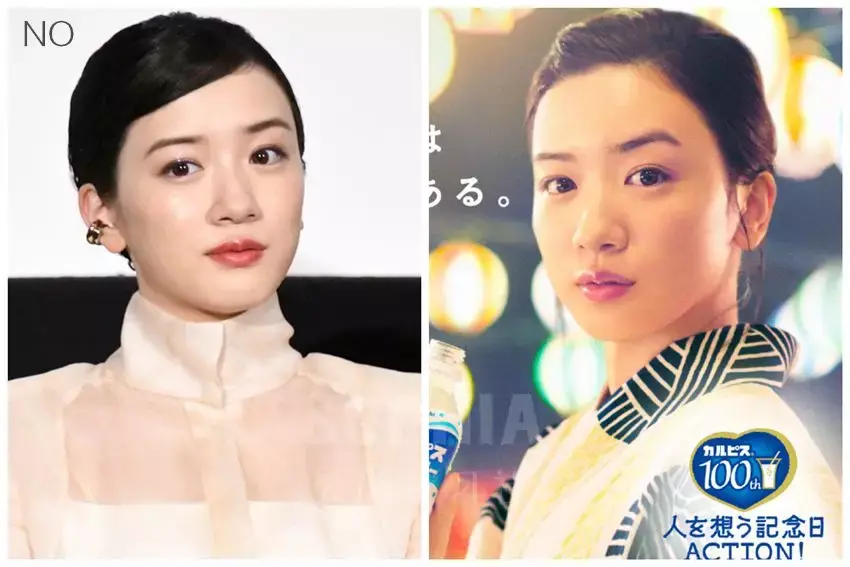 因此, 如果你面中的饱满度不够,脸型偏长,线条感较强而肉感不出众,整个人偏冷清挂, 那就可以多参考永野芽郁和苍井优这样的类型哦。