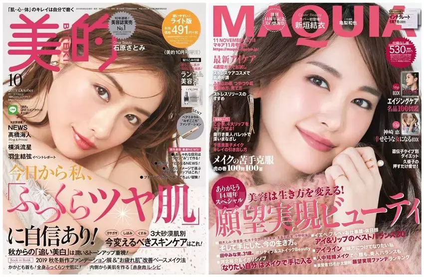 底妆都十分水润清透,擅长用高光打造透亮的素肌感。 对比韩系的水光肌就能发现,日系妆容更强调的是「透亮自然」,而水光肌更加强调「白得发光」 ▼