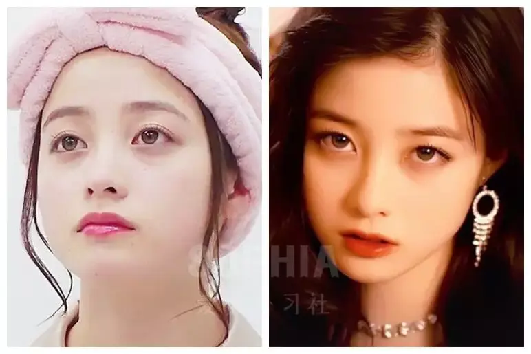 对比一下同样少女感十足的郑爽与桥本环奈,两人除了长相都非常偏「幼态」以外, 桥本环奈的妆容是不是看起来更加透亮一些?▼
