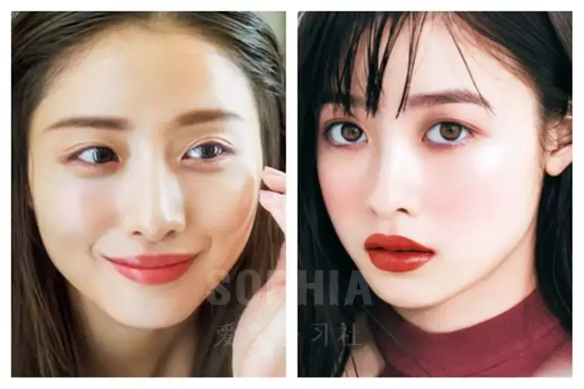 而在「日系透明美少女」的路线上, 两人几乎都会在发型上做出改变。 同时, 妆容也会添加些许透明感和血色感, 营造出清纯的少女气 ▼