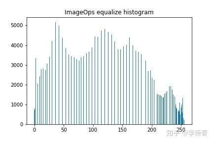 Figure 4 : 使用ImageOps对car.jpg直方图均衡化后直方图分布