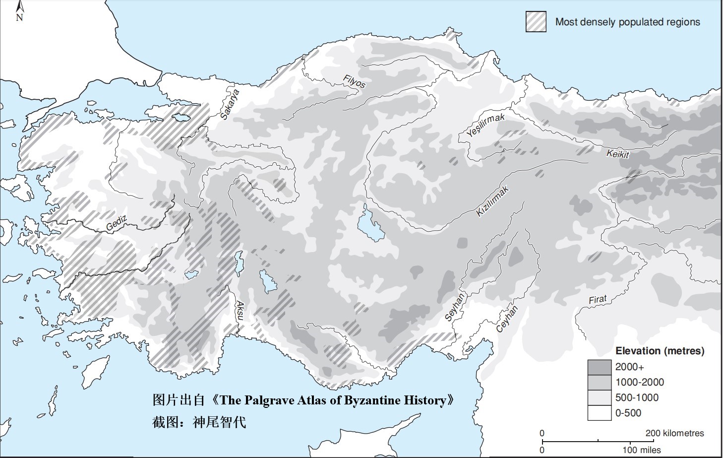 Map 1.7 Asia Minor: major population centres, 7th–12th centuries. 小亚细亚:主要人口中心,7-12世纪。