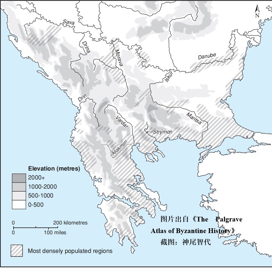 Map 1.6 The Balkans: major population centres, 7th–12th centuries. 巴尔干半岛:主要人口中心,7-12世纪