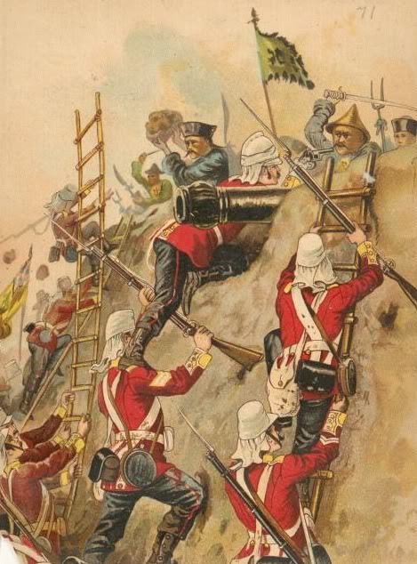 21日,英法联军3500多人,加上印度和非洲雇佣军2500人,在两连炮兵和舰炮的支援下开始进攻大沽口。