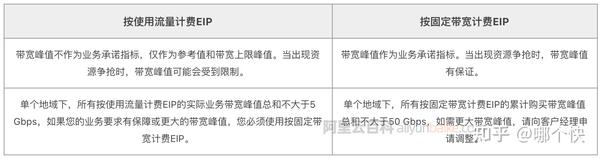 另外,阿里云弹性公网EIP按固定带宽和按流量带宽峰值是有区别的,EIP按固定带宽计费带宽峰值有保证,参考下表: