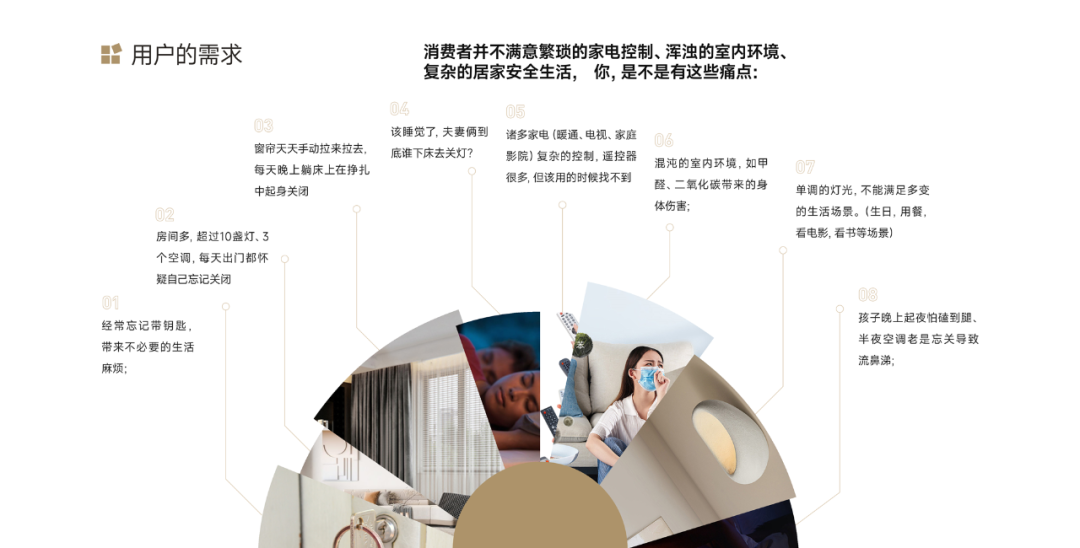 第四,就是睡眠的这个场景,那到底谁去关灯,客厅的灯谁去关,特别是到了冬天比较冷的时候,也是一个非常非常明显的一个痛点。