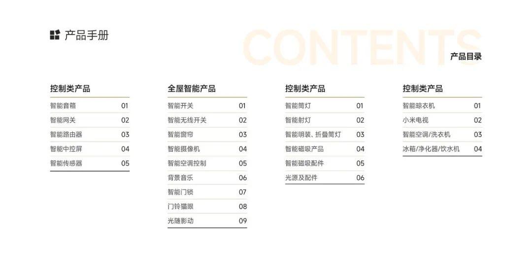 最后我再快速介绍一下我们整套方案里边涉及到的这些产品,这里看到就是有四大类,包含了控制类的、全屋智能的、以及灯和家电。