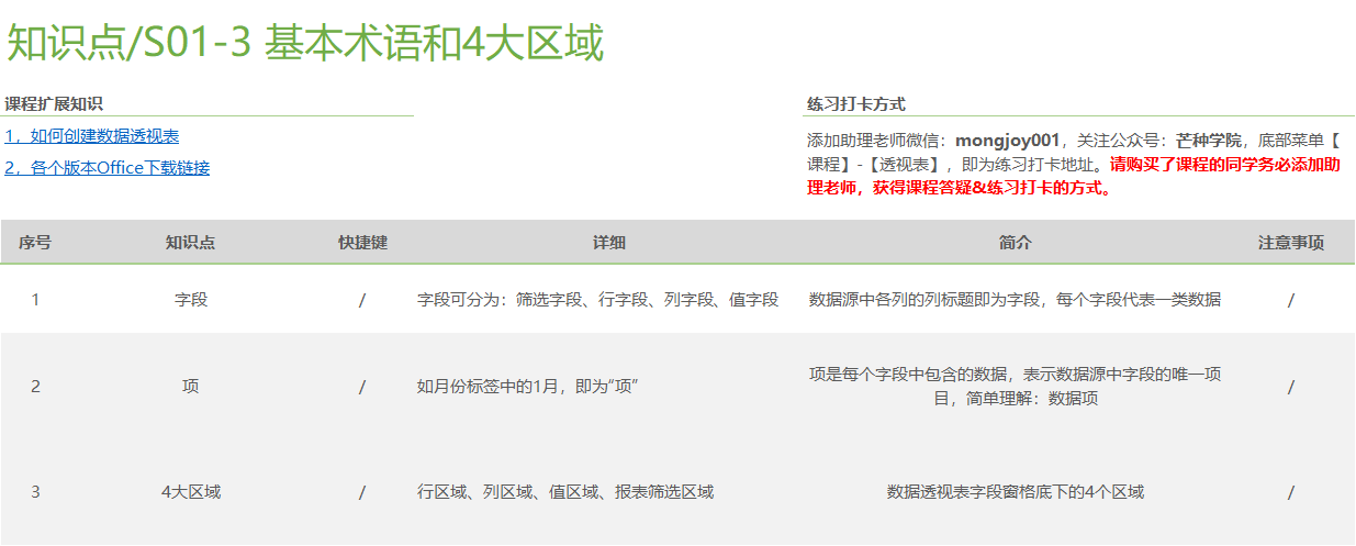 熟悉数据透视表的基本术语、4大区域、常用操作对于后期深入学习数据透视表是非常重要的,这些基础知识看起来会比较枯燥,但是确实整个学习中最重要的部分。
