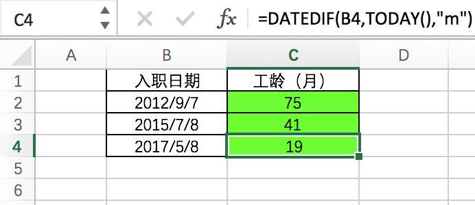 如图:B列为入职日期, 要求计算入职多少月?