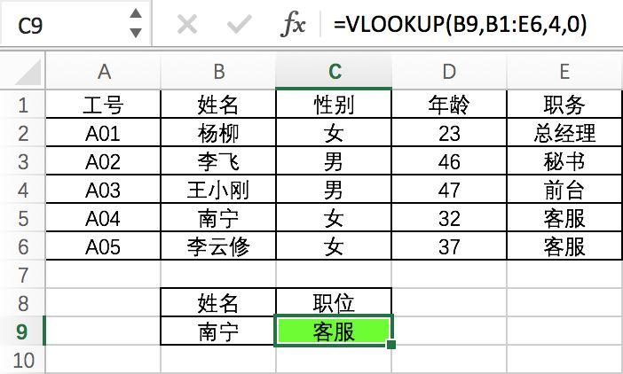 如图:根据姓名查找职位。