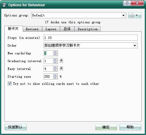 不同选项组主要控制的是 每天的新卡片数量 和 是否随机。