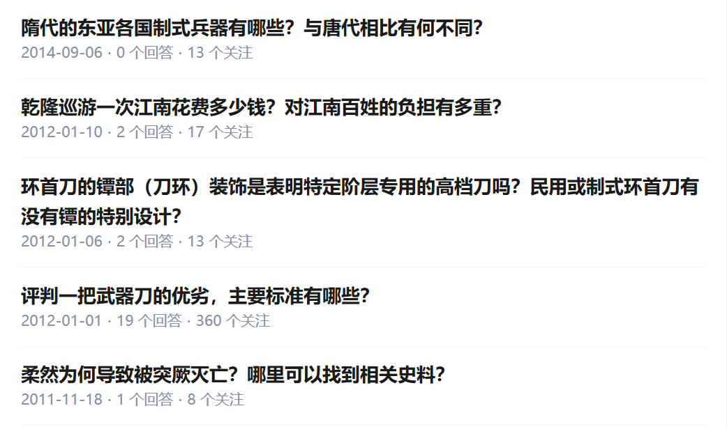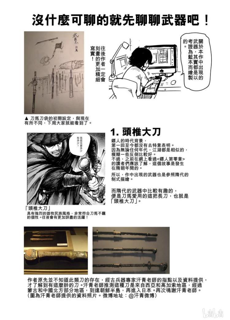 而在更久之前,也就是七年前,那时的《镖人》还没连载,一位“许先哲”的知友在知乎问了一些关于隋唐时期的知识的问题,虽然没得到过多的回复,但是这也的确印证了他曾经花了很多时间来构思《镖人》这部作品,而且为了更贴近史实,做了很多工作。比如环首刀便是作品里面经常出现的战刀。