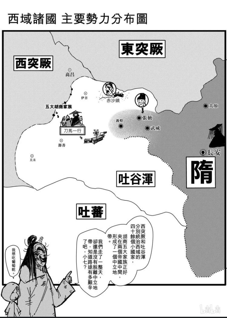 《镖人》背景在隋唐时期,具体的内容,未防剧透,就不多说了,在众多势力角力的西域,有着五大胡商家族,他们作为中立势力,保护着来往西域的商人,而隋朝和西突厥则以强者的身份为西域带来秩序以及压迫。主角刀马,原朝廷官员,被流放到西域,正义的将领、狡诈的官员、暴戾的君主、强大的雇佣兵以及在狭缝中挣扎的西域诸部落,构成了这个大舞台的演员,而刀马和知世郎则是作为渺茫西域的一份子,成为西突厥和隋朝角力的大事件里面微不足道的一份子,不会影响大局,但是他们是开启未来篇章的至关重要的棋子,随着身份逐渐被揭开,无论是刀马还是知世郎,都将搅动风云。