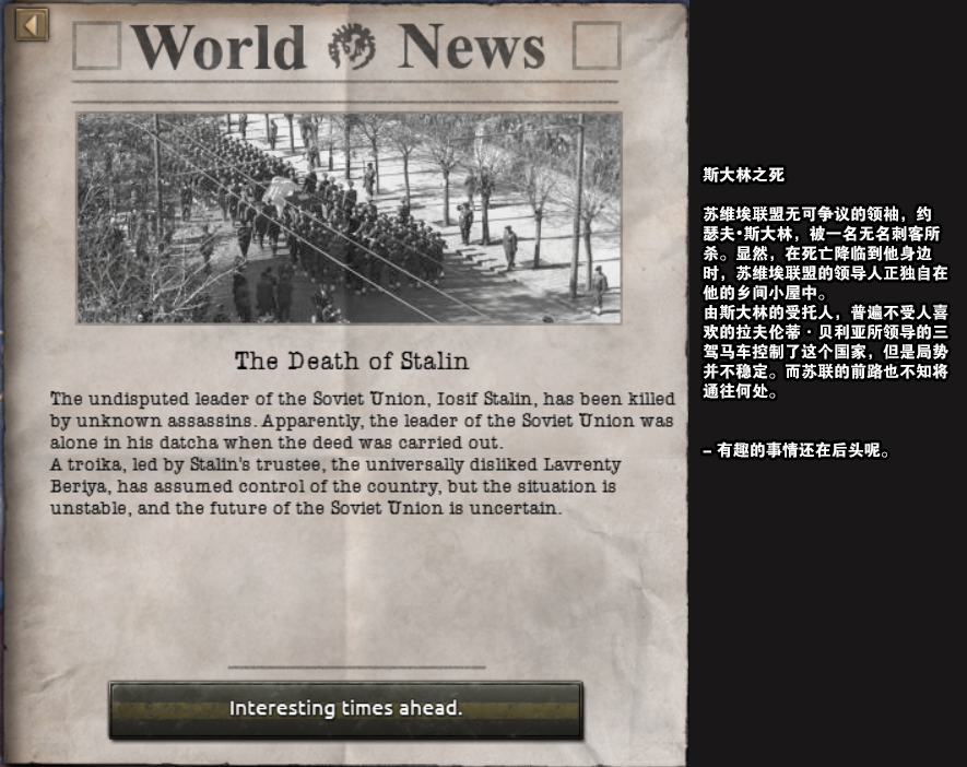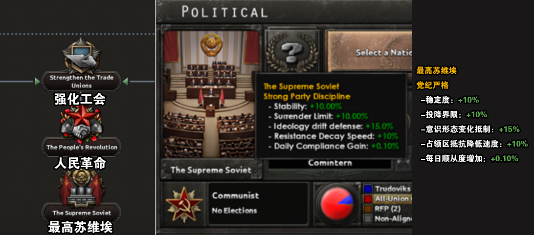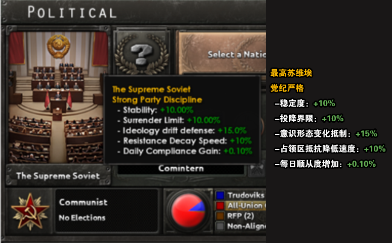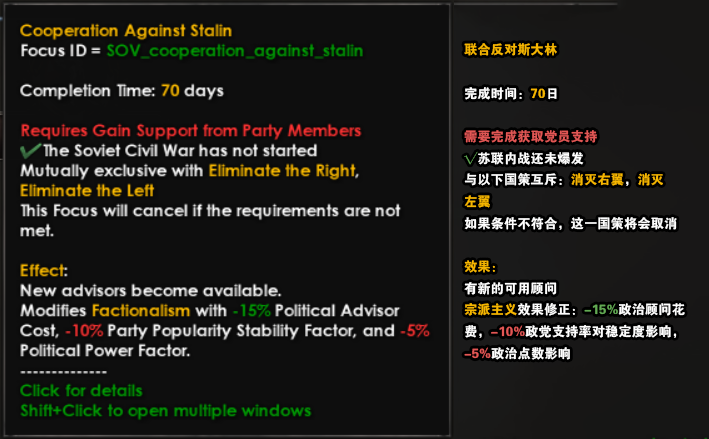 但是可能更重要的是,斯大林会继续他自己的国策树。所以,正如你们上周所看的日志那样,这会影响反对派。