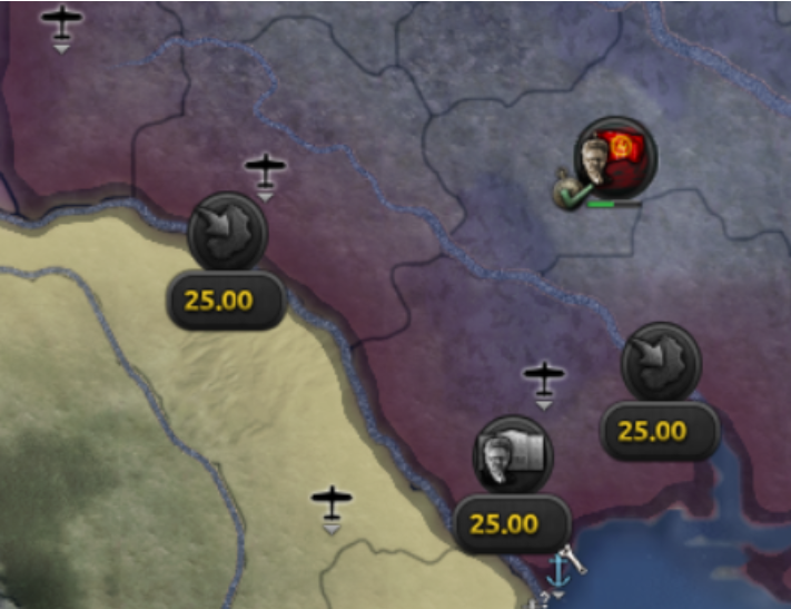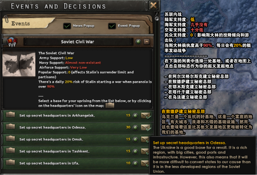大体上,这一机制与西班牙内战机制十分相似,不过我们做了一些轻微的简化,因为苏联省份数量太多会导致玩家难以应付。
