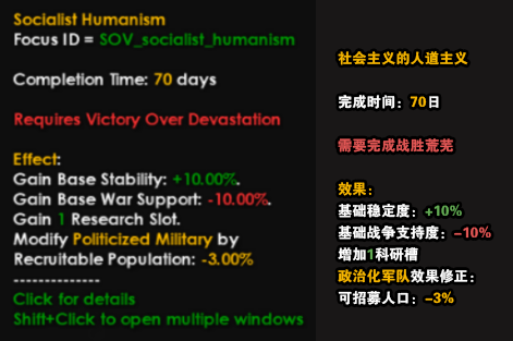 这个分支进一步增强了你的国家和你的盟友,以“社会主义的人道主义”国策结束。