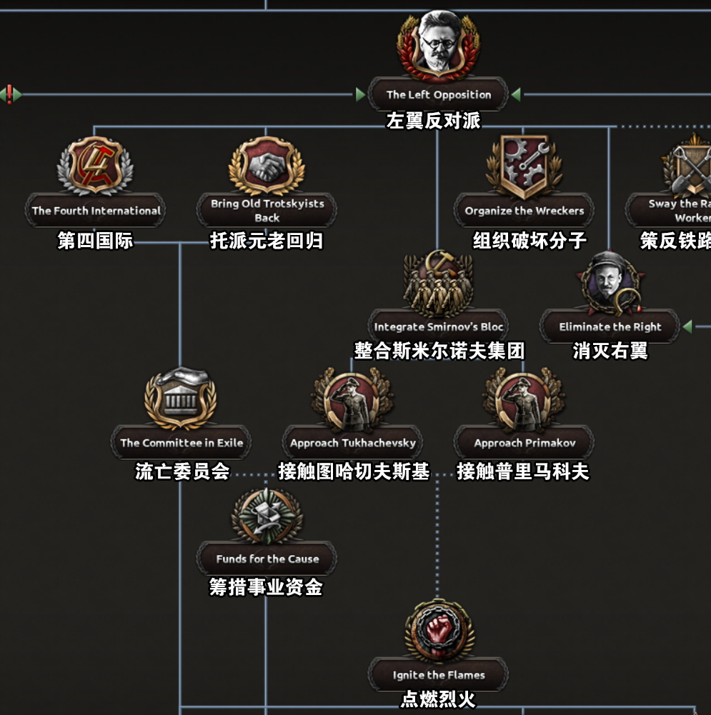 对于左翼反对派,国策树的“下半部分”(更确切的说)如下图所示: