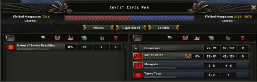 In general, the mechanics are very similar to the Spanish Civil War mechanics, although slightly simplified as the sheer number of Soviet states would make it overwhelming.