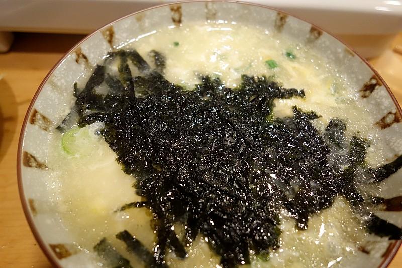 河豚火锅的完美句点,在于把河豚火锅剩下的汤加入海苔、鸡蛋和米饭煮成的粥。一口下去,河豚的鲜味还在嘴里回荡着。