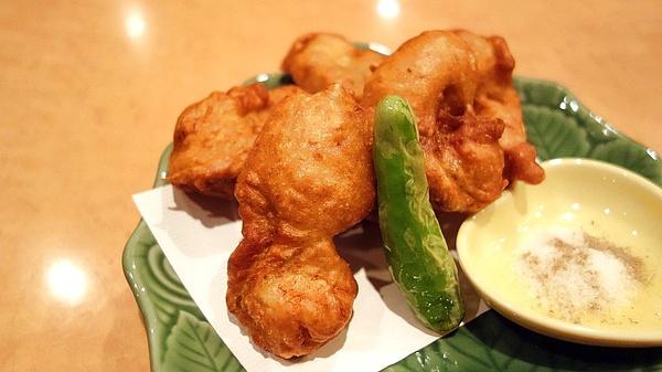炸河豚。外皮酥脆,里面的野生河豚肉十分有弹性,完爆奈良那一盘几十条街。