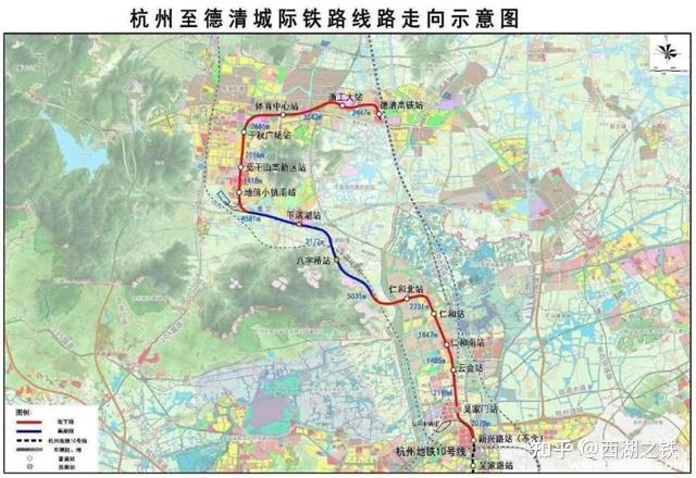 杭德城际铁路全长34.6公里,设站11座,采用地上和地下线相结合的方式,计划工期5年,2026年底完工。线路起于杭州余杭区仁和南站,与杭州地铁10号线同台对接(远期贯通运营),止于德清高铁站。初期采用4节编组A型车,最高运营时速120km/h,全自动驾驶。