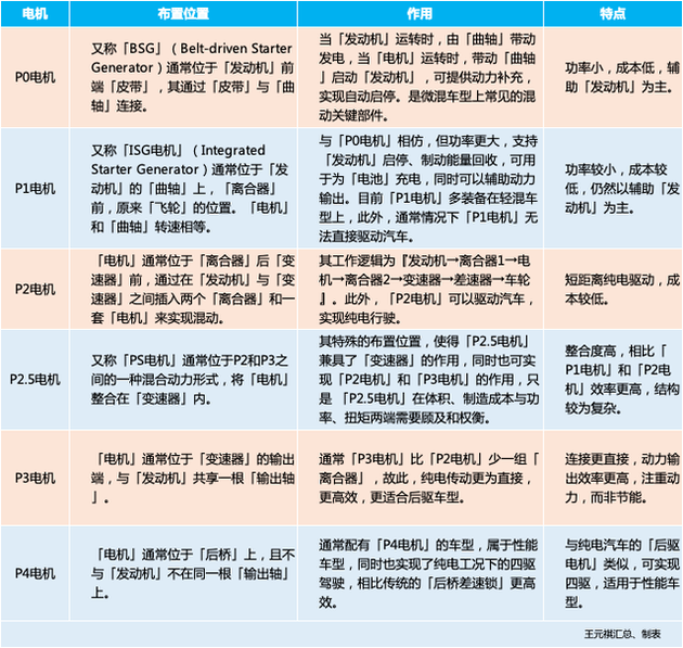 不仅发动机有节油和性能之分,P0-P4电机的位置、功能和功率也各不相同。
