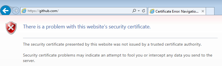 打开Windows 7受影响的计算机电源,并尝试浏览到HTTPS URL(例如 https://github.com),您会看到类似于以下内容的警告: