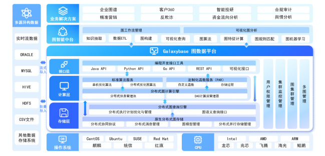 Galaxybase是创邻科技自主研发的国内首款超大规模分布式并行原生图平台产品,拥有优异的数据读写查询性能、强⼤的可视化分析能力、丰富的可编程接口和开箱即用的图算法引擎,是集存储、计算、分析于一体的图数据全⽣命周期⼀站式管理平台,符合大数据时代下,客户对数据高效存储和查询的需求。