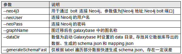 如果已有schema.json文件,可以跳过此步骤,直接从第二步开始执行。在没有schema.json文件的情况下,用户可以在Galaxybase服务器上调用convert工具生成,调用命令如下: