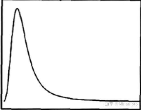 即类似于正态分布,双边拖尾,但是头朝左。头朝左被称作“右偏态”,即平均数小于中位数,尽管最穷的穷人和最富的富人都很少,但最富的富人的财产与中间阶级的财产的差距大于中间阶级与最穷穷人之间的财产差距。