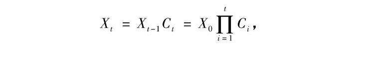 X0表示他初始财产,而Ci则是连乘符号。