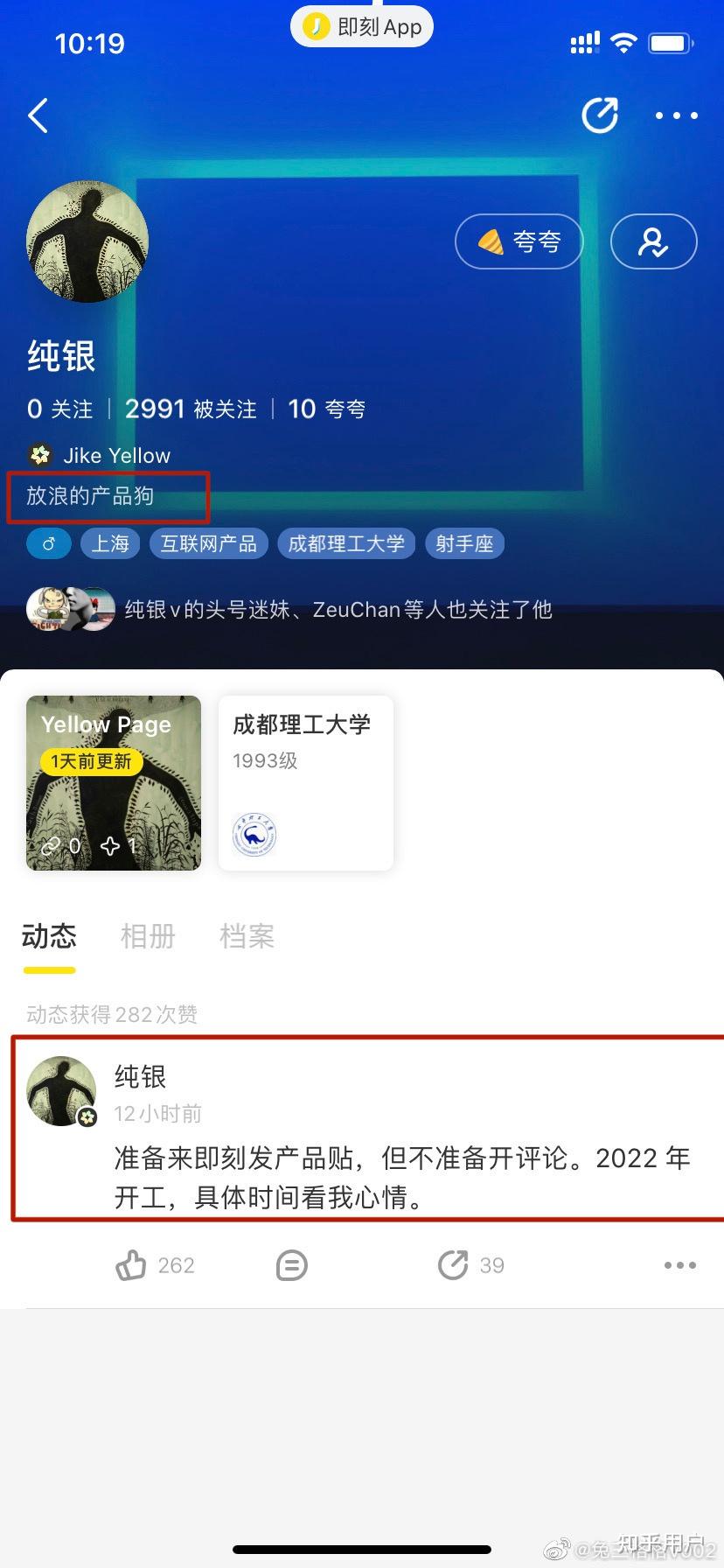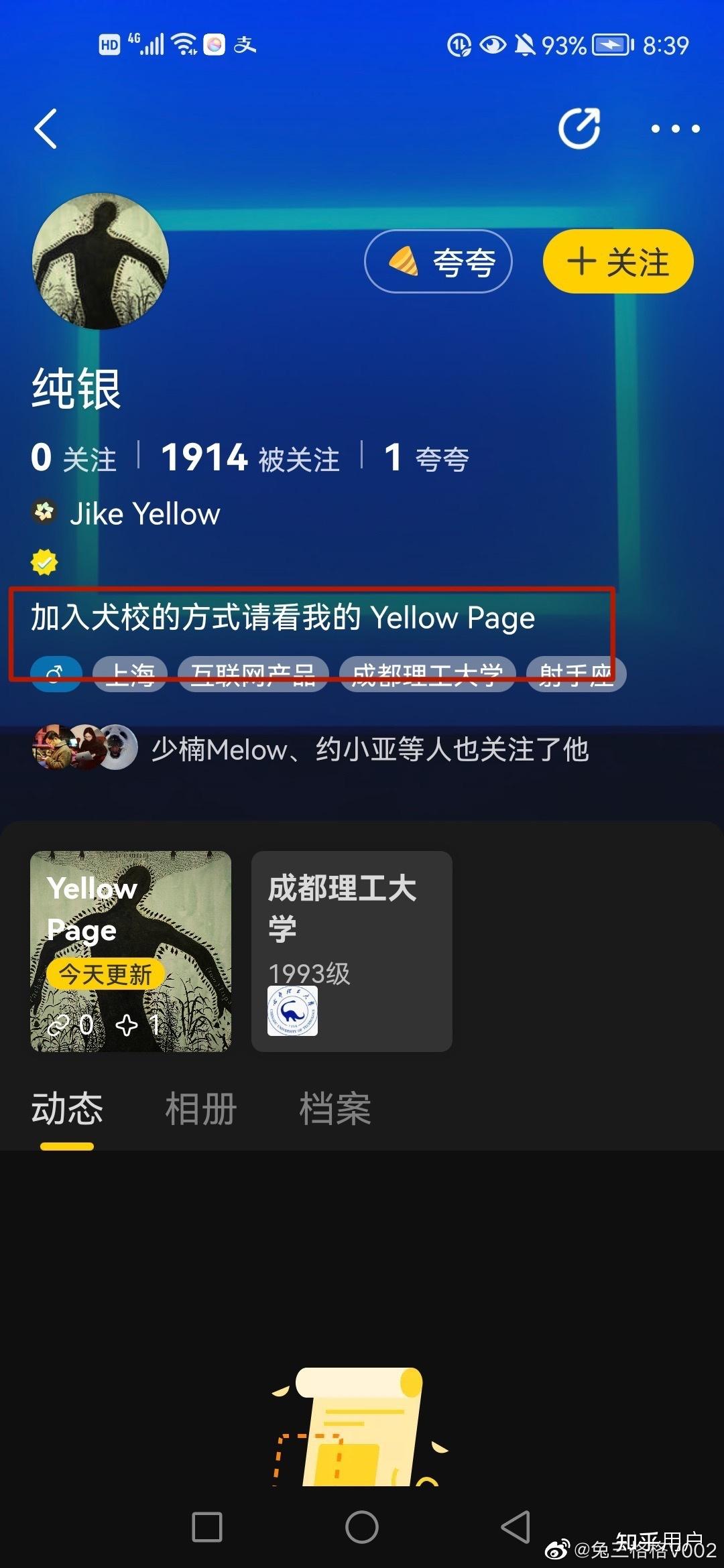 1、纯银在「即刻」最初的签名是:犬校申请入口在Yellow page。(图3⃣️4⃣️)