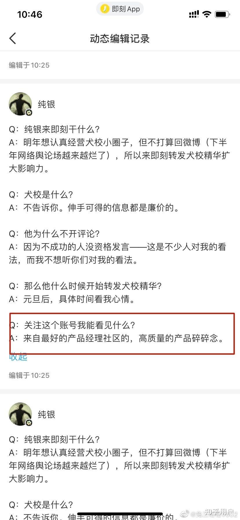 3、「即刻」会员修改功能开放后,纯银来回来去的改签名,改动态,还自称“最好的产品经理”(图6⃣️7⃣️)……也是快吐了,既然那么好,@TapTap发现好游戏 怎么不和他续约了呢?可拉倒吧