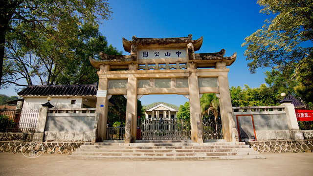 【环境】三河坝中山纪念堂前的大型石碑记载,这座中山纪念堂于1929年落成,比建于1930年的梧州中山纪念堂早一年,是目前发现全国最早建成的中山纪念堂。为两层水泥框架结构,面积近500平方米,由胡汉民题写的“中山纪念堂”字样镶嵌在楼顶匾额上。